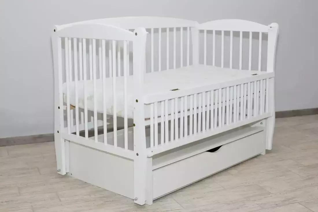 Дитяче ліжко - має бути найбільш тихим і затишним місцем для Вашого малюка. Ми рекомендуємо звернути увагу на ліжечко дитячу Еліт 2. Воно виконане повністю з натурального дерева бук, покрите сертифікованою фарбою на водній основі - абсолютно безпечною для Вашого малюка (адже ми знаємо, як вони люблять погризти спинку ліжечка). Колиска оснащена маятниковим механізмом гойдання - він дуже плавний і практично безшумний. А коли малюк підросте - маятник можна зняти. Також, ліжечко має ортопедичні круглі ламелі, підматрацник регулюється на 3 рівня - щоб батьки могли самі вибрати зручну для них висоту. І для ще більшої зручності на ліжечку передбачений відкидний бік з фіксаторами. Шухляда під ліжком - з ДСП, закритого типу. У ньому Ви можете зберігати необхідні для малюка речі. Ліжечко має сертифікат якості і висновки санітарно-епідеміологічної експертизи щодо безпечності використання ліжечка для малюка і батьків. Все продумано до дрібниць - для Вашого комфорту.