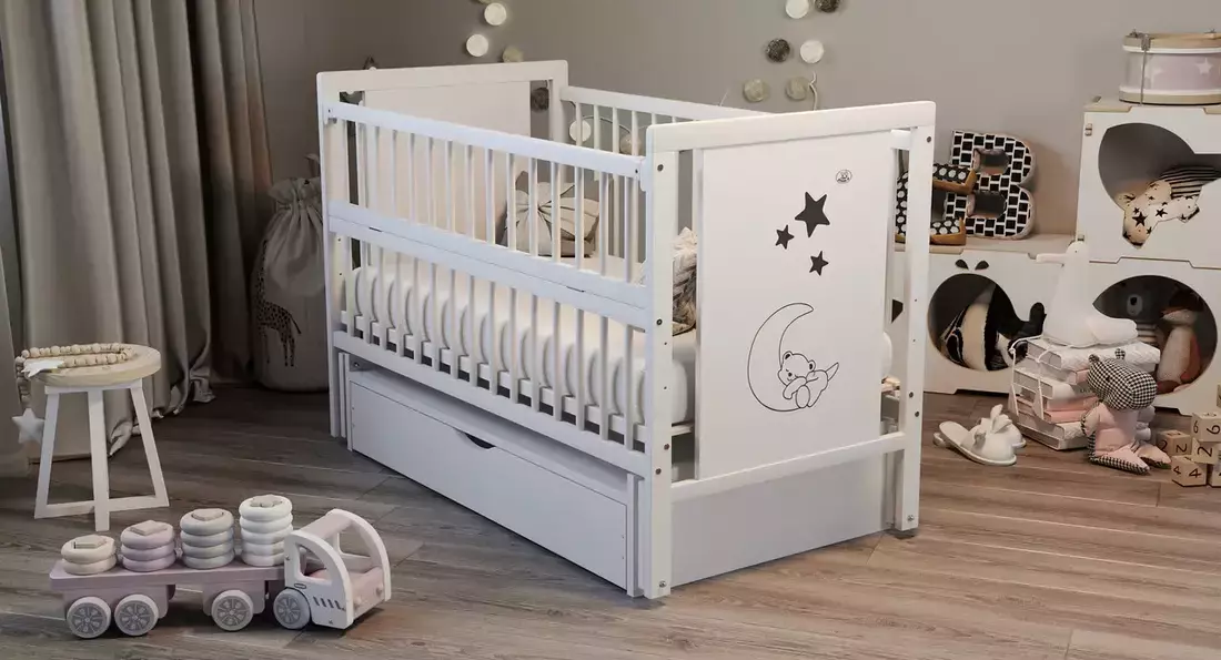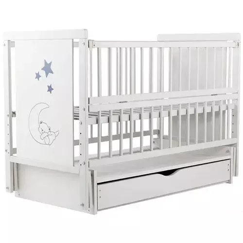 Для найсолодшого сну Вашого малюка пропонуємо ліжечко Ведмедик. Воно виконане з натурального дерева бук, пофарбоване безпечною сертифікованою фарбою на водній основі. За допомогою маятника можна заколисувати малюка, а відкидна боковина додасть зручності у використанні ліжечка. Ламелі днища колиски - ортопедичні, виконані з плоских ламелей. Також, ліжечко укомплектоване шухлядою закритого типу, де буде зручно зберігати найнеобхідніші речі вашого малюка.