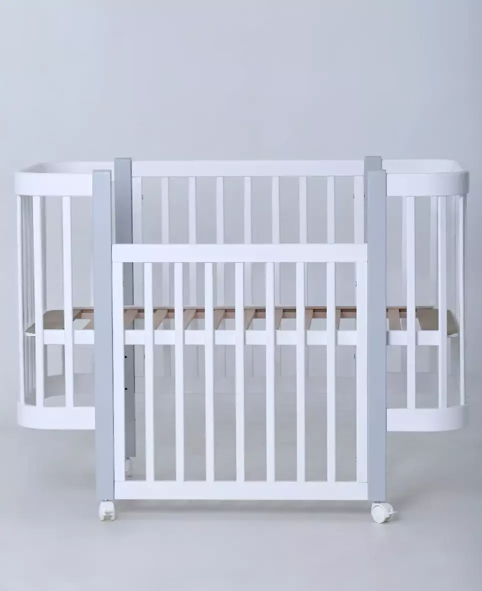Ліжко дитяче Мія - сучасна та стильна модель, виконана з натурального дерева бук, пофарбована сертифікованими фарбами на водній основі - абсолютно нешкідливими для Вас і Вашого малюка. Бортики ліжечка округлені. У комплекті до ліжечка відразу ж йдуть колеса. Це допоможе легко перемістити ліжечко в потрібне місце кімнати. Також, в комплектацію входить маятник для заколисування малюка - з його допомогою малюк засне швидше і солодше. Ліжечко має опускну передню стінку для зручності батьків. Є можливість поставити днище ліжечка під кутом. Все продумано до дрібниць - для комфорту і безпеки Вашого малюка!