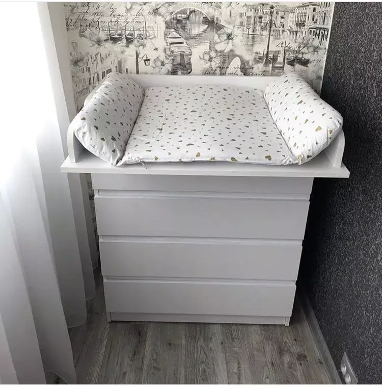 Розміри пеленального комода: 102*80*43 см, висота до пеленатора – 90 см. Розмір пеленатора: 73*71 см. Розмір шухляд: 71*37*12 см.